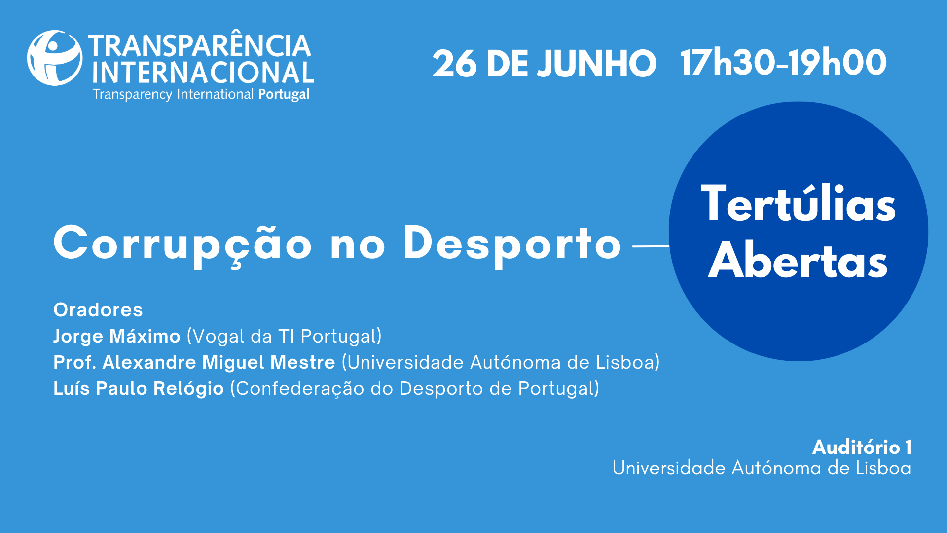 A Tertúlia Aberta do próximo dia 26 de junho será dedicada ao tema “Corrupção no Desporto”.