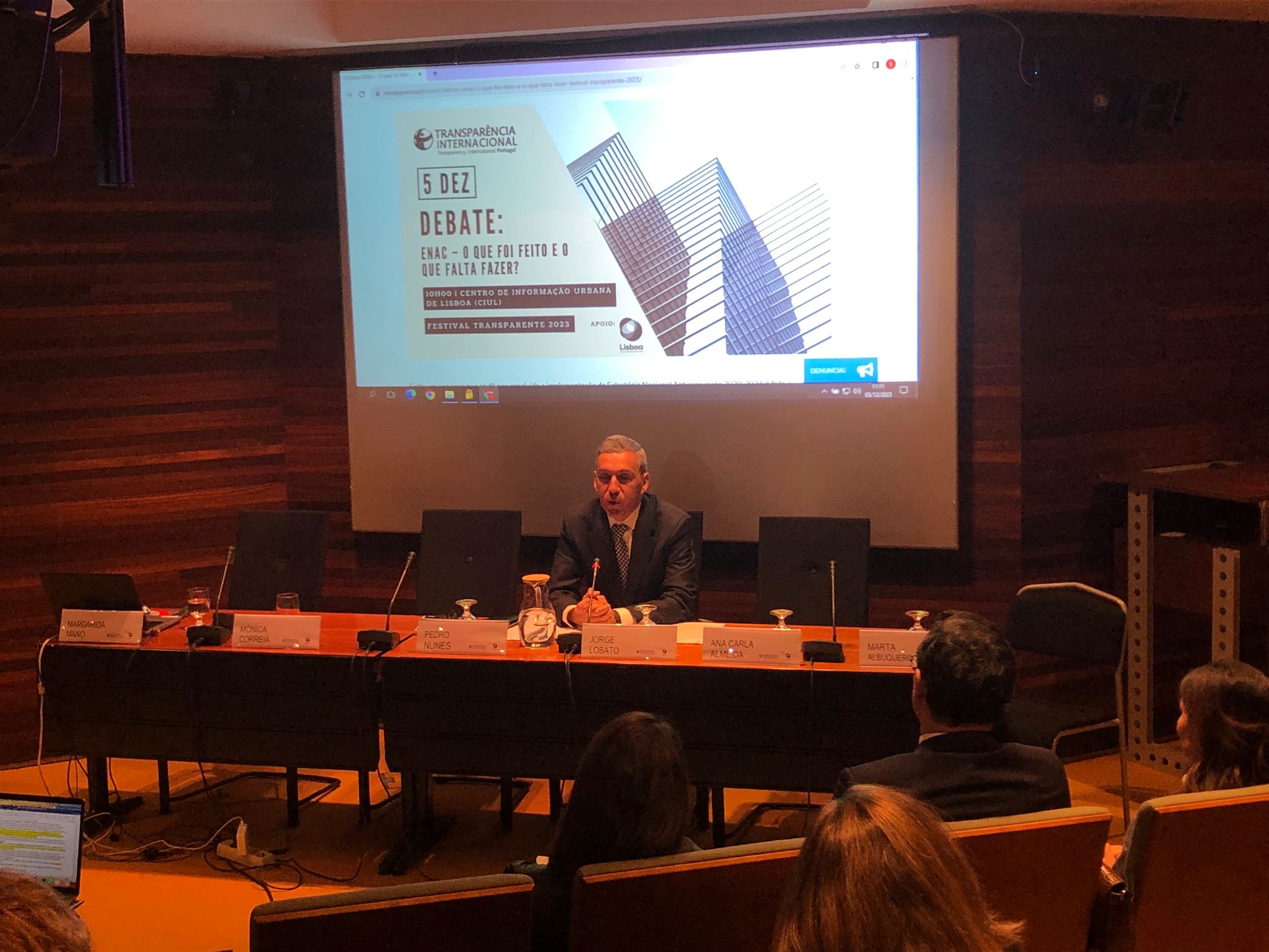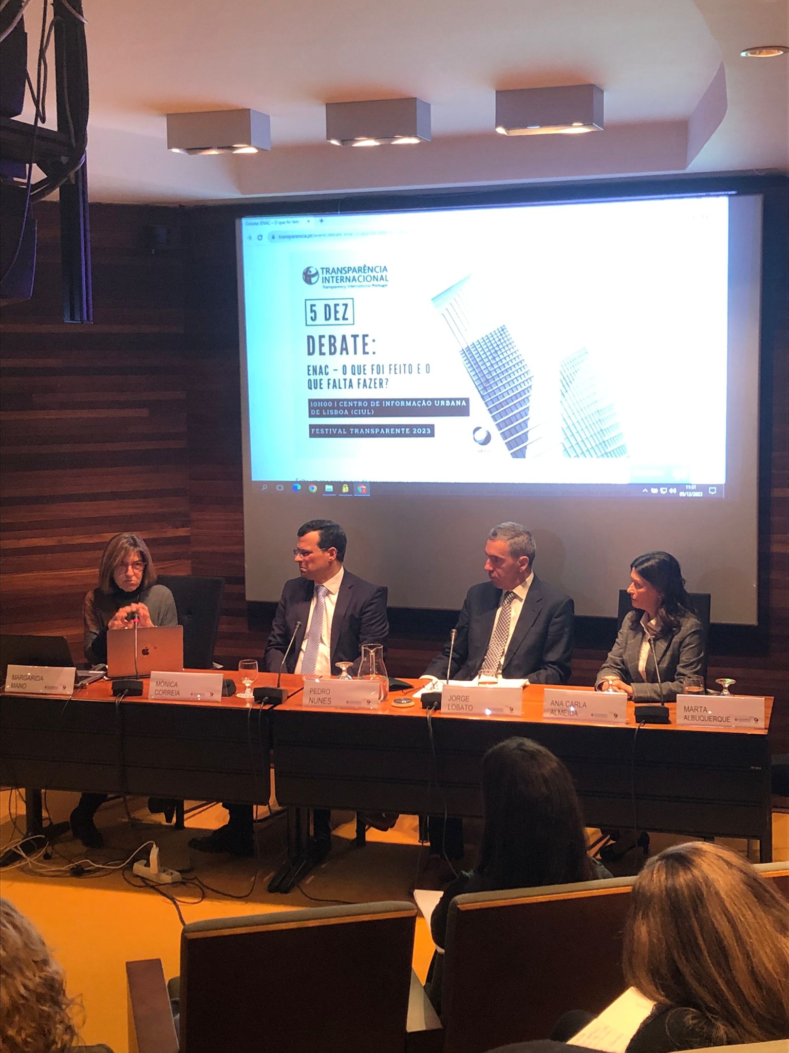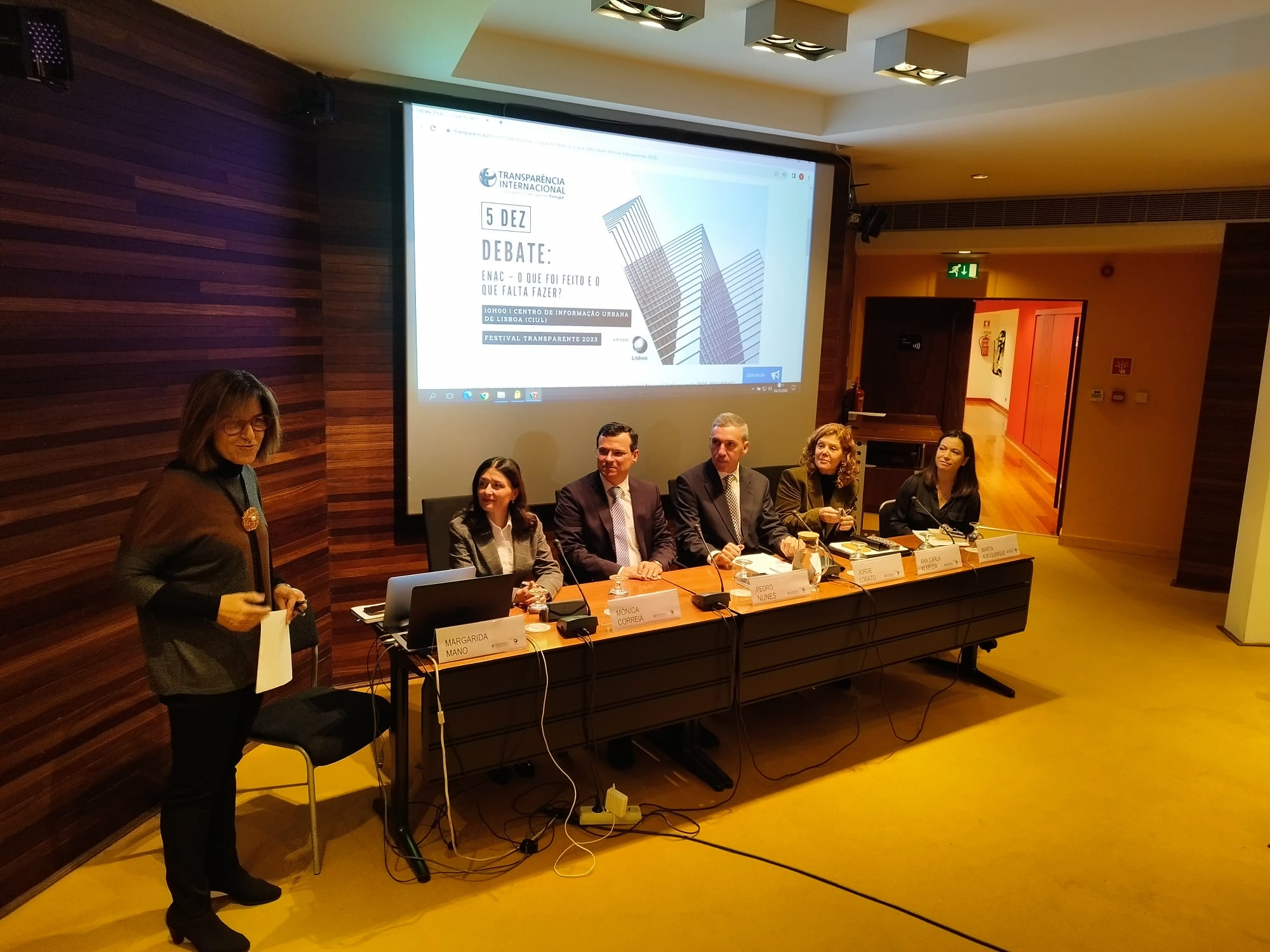 O Debate: “ENAC – O que foi feito e o que falta fazer?” contou com a presença de um painel de ilustres oradores, entre eles Mónica Correia e Pedro Nunes (Administradores da Entidade para a Transparência), Jorge Lobato (Secretário-Geral do MENAC), Ana Carla Almeida (Dinamizadora do Think Tank da PGR) e Marta Albuquerque (Vice-Presidente da Estrutura de Missão Portugal Inovação Social). A moderação da sessão esteve a cargo de Margarida Mano, Presidente da TI Portugal.