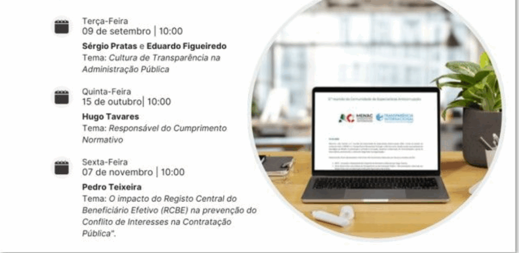 Entre setembro e novembro, a Transparência Internacional Portugal e o Mecanismo Nacional Anticorrupção promovem três sessões online dedicadas à integridade no setor público.